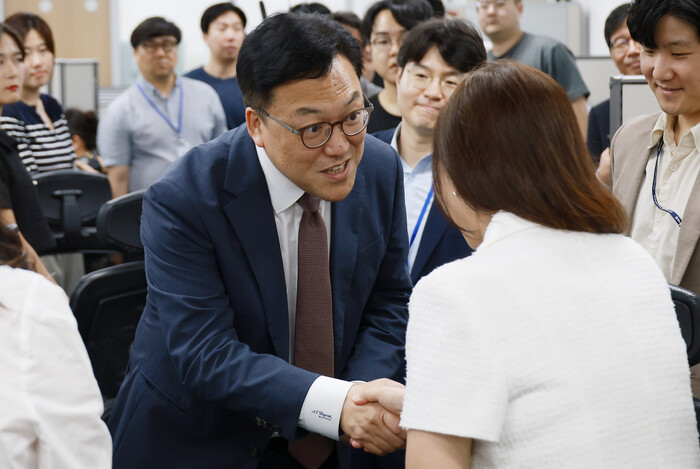 [시사투데이 이윤재 기자] 제10대 김병환 금융위원장의 취임이 31일 오후 서울 종로구 정부서울청사에서 진행됐다. 김병환 금융위원장은 직원들과 간단한 인사를 마친 후 금융위원회 기자실에서 기자들과 인사를 나누는 시간을 가졌다.