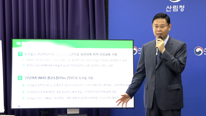 [시사투데이 이윤재 기자] 김용관 산림청 산림보호국장이 1일 정부대전청사 기자실에서 '아름다운 조시숲 50선' 선정결과 및 도시숲의 역할과 기능에 대해 발표하고 있다.<사진=산림청 제공>