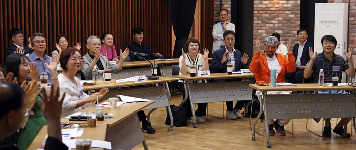[시사투데이 이윤재 기자] 유인촌 문화체육관광부 장관이 2일 서울 종로구 한국장애인문화예술원 5층 이음아트홀에서 진행 중인 연극배우 대상 수어교육 현장을 방문해 기념촬영을 하고 있다.